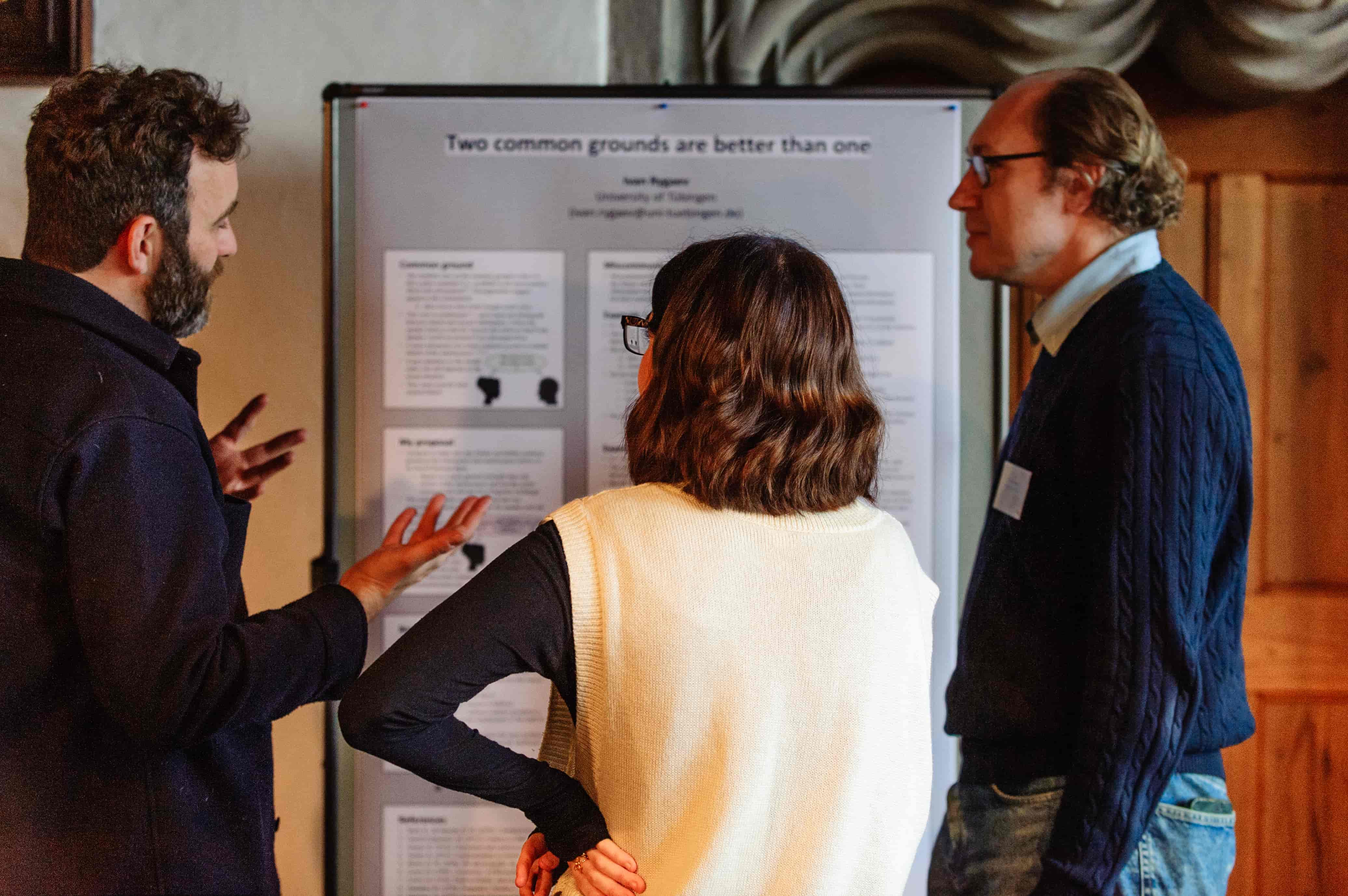 14:30 - 15:30 | ![]() Asya Achimova, Michael Franke & Martin V. Butz (University of Tübingen) Speakers may be uncertain as to whether certain beliefs are shared in conversation, and as a consequence, whether they belong to the common ground. In this talk, we argue that indirect utterances, such as “The election outcome was interesting!”, can be viewed as a tool for common ground management: They allow speakers to probe the beliefs of the listener without exposing their own beliefs publicly. We offer a Rational Speech Act model of indirect communication that captures (1) the speaker’s choice of indirect utterances; (2) the inferences conversation partners draw about the meaning of indirect utterances when they occur as a response in a conversation. We show that model predictions qualitatively match data from three behavioral experiments. |